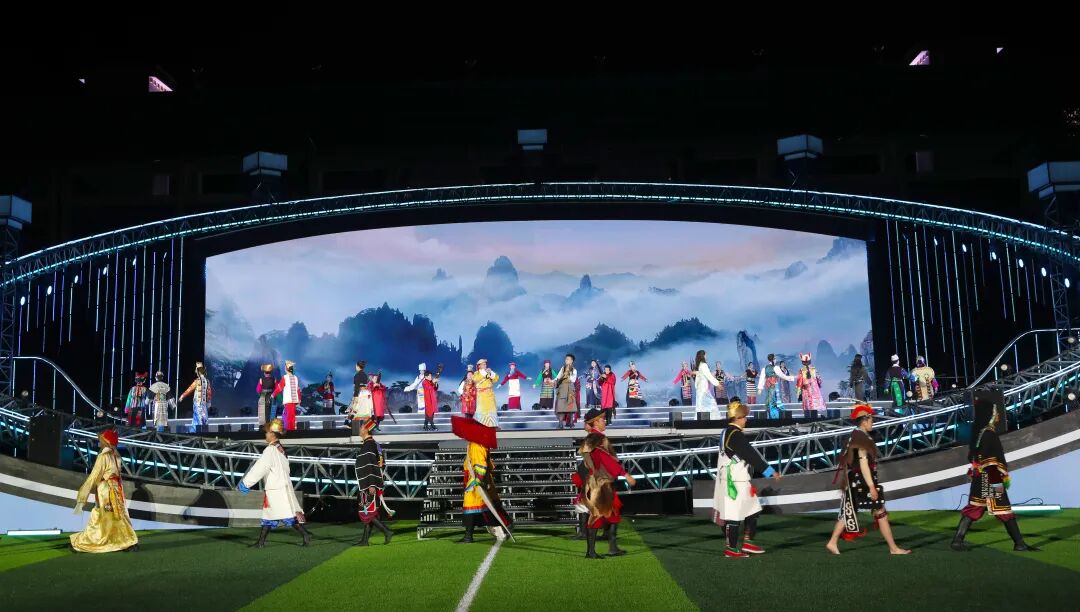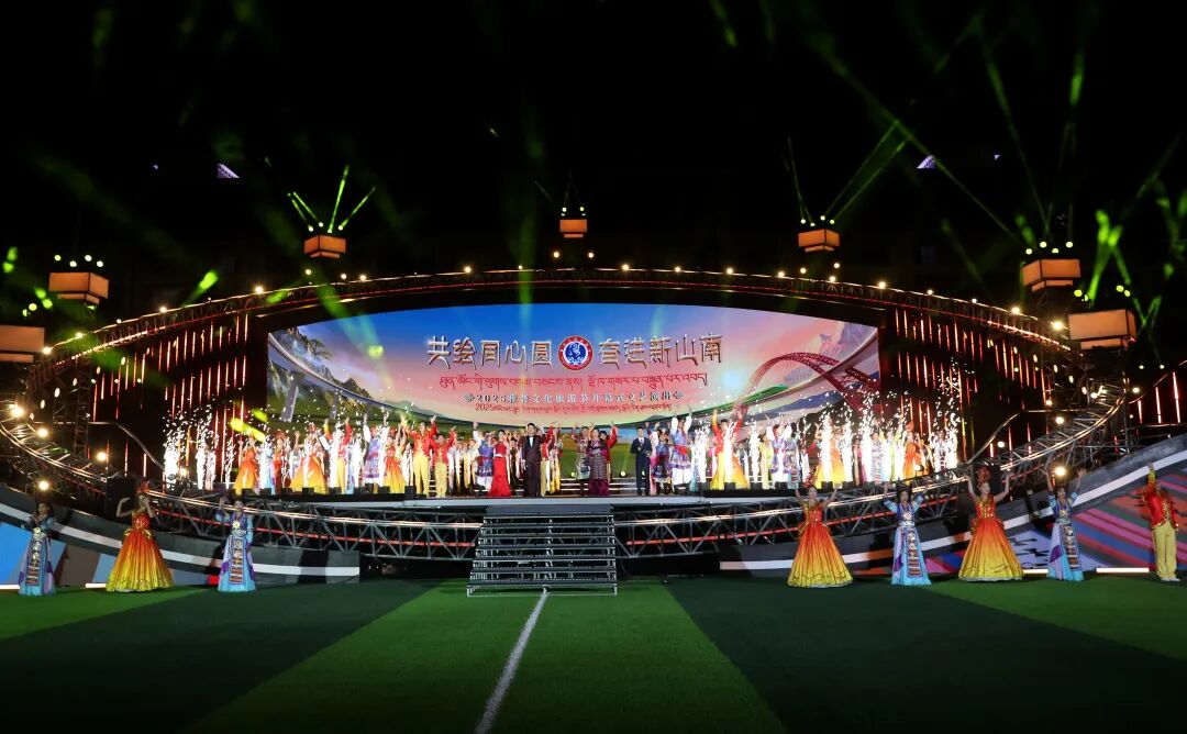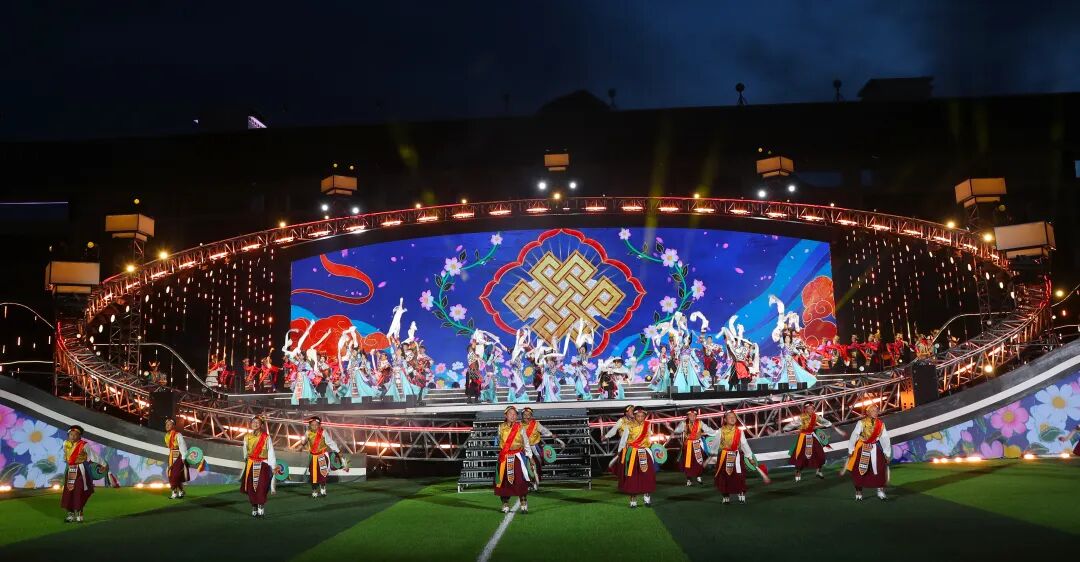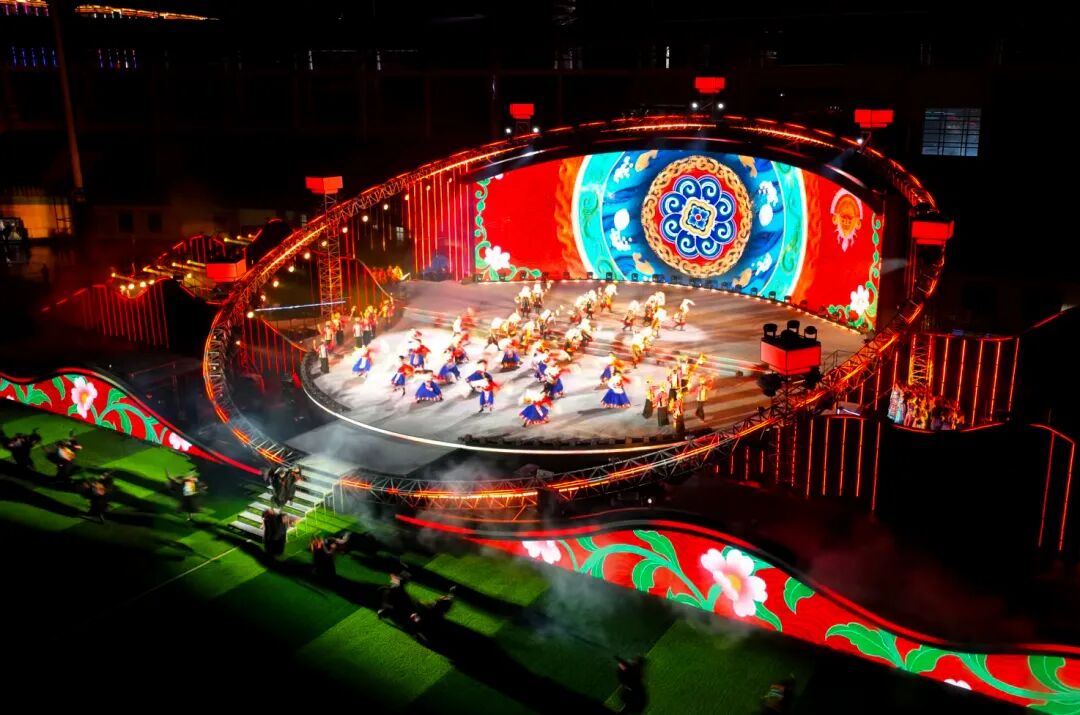 开幕式文艺演出以“共绘同心圆 奋进新山南”为主题,在视觉秀《雅砻纪事》中拉开帷幕,演出分为“同心共荣 大地欢歌,同心筑梦 时代交响,同心奋进 山河共舞”三个篇章,将皖藏两地节目进行创新融合,展现了山南60年来的发展变化。