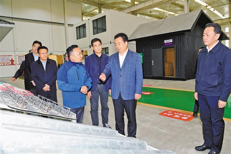 日前,自治区党委书记王君正深入企业,调研生产经营情况。这是王君正在西藏藏建科技股份有限公司生产车间内,听取企业生产经营情况介绍,详细了解生产工艺、产品研发和市场拓展等情况。 本报记者 李洲 摄